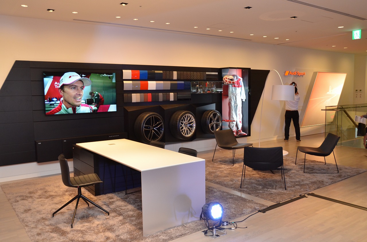 アウディスポーツ店は、アウディの正規販売店内に専用のCI/CDを用いたコーナーを設けるショップインショップ形式で展開。各店舗にはアウディスポーツの取り扱い車種や、同ブランドの関連情報に精通したアドバイザーを配置する。今後はR8/RSシリーズ拡販(2020年までに年間1200台販売)と、ウェア、小物類などのスポーツコレクションの販売(現在70アイテム、20年までに120アイテム)にも注力する。