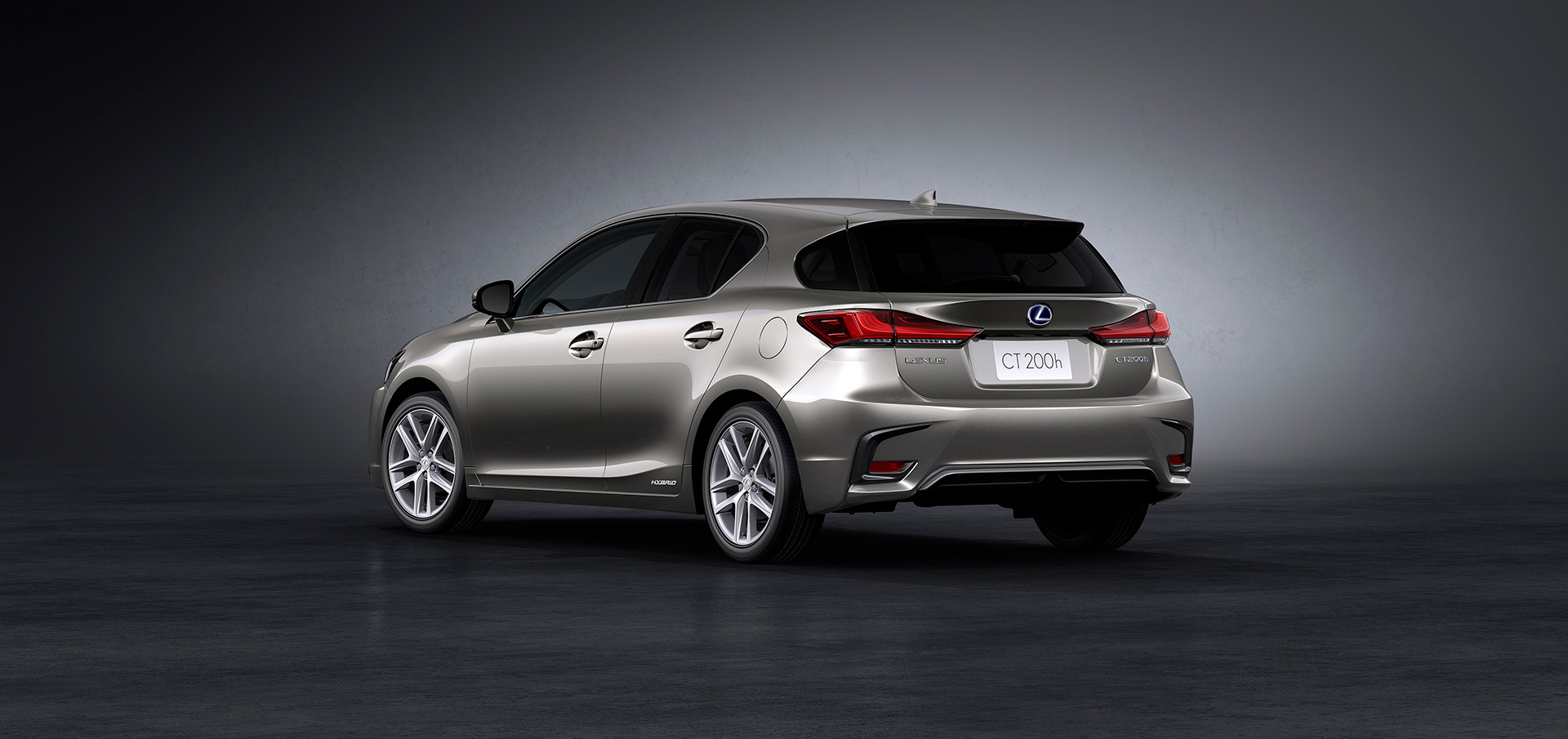 新型CTは、レクサス独自のデザイン要素をさらに洗練させ、個性的なデザインを一層進化させた。具体的には、上質かつアグレッシブな印象を与える新規造形のメッシュを持つスピンドルグリルや、ヘッドランプ上部に配置されたアローヘッド形状のクリアランスランプなど、精悍な表情が際立つエクステリアを実現している。